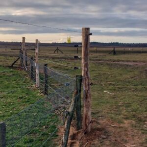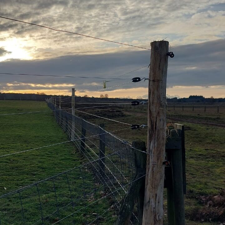 Na de aanval door de wolven op onze schaapskudden is besloten het wolfwerende raster hoger te maken. Bij de eerste kraal op de Eder heide is dit inmiddels uitgevoerd. Het raster is nu ca. 1,70 hoog en staat onder stroom wanneer er schapen in de kraal zijn.